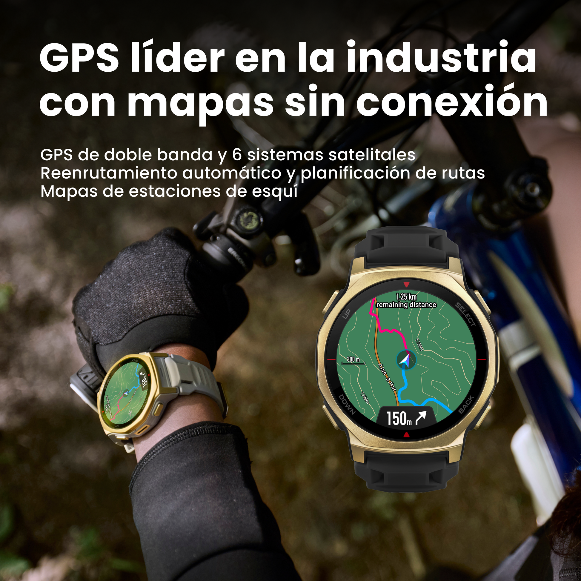 Rastrea con precisión cada movimiento, incluso bajo edificios altos o una densa vegetación. La compatibilidad con doble banda de seis sistemas satelitales ⁵ ofrece una conexión rápida y fiable, ideal para aventuras al aire libre exigentes, desde caminatas por terrenos difíciles hasta intensas carreras de trail.