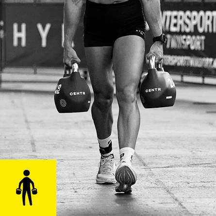 HYROX combina entrenamiento funcional y de carrera, en el que los participantes corren 8km, intercalados entre 8 ejercicios funcionales. Cada carrera tiene lugar en una amplia sala de exposiciones, lo que crea una carrera envolvente y electrizante, donde los espectadores pueden ir a animar a los competidores.