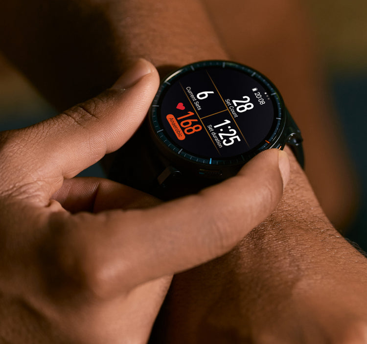 Registra tus sesiones de fuerza con detección automática de repeticiones, series y descansos en 25 tipos de ejercicios ⁵ — uno de los más de 170 modos deportivos incorporados para ayudarte a entrenar con manos libres y mantenerte concentrado.