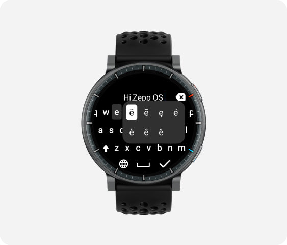 Escriba respuestas de mensajes de Android utilizando un teclado QWERTY completo o dígalas mediante la función de voz a texto¹². Zepp Flow ™ optimiza su respuesta con sugerencias o traducciones y la envía sin problemas. -