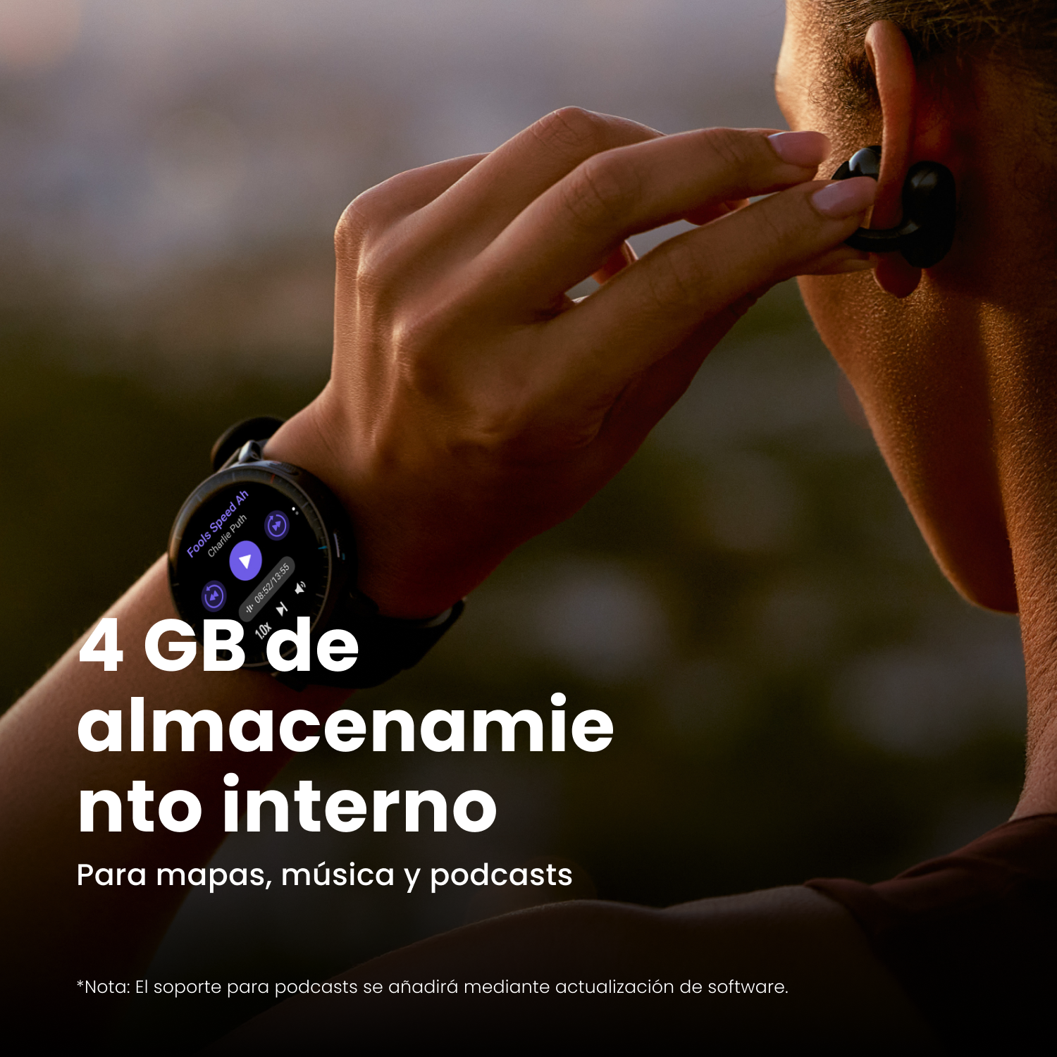Escenario de uso típico: brillo de pantalla predeterminado, esfera de reloj estática, asistente de voz desactivado; uso continuo durante 24 horas/frecuencia cardíaca constante (cada 5 minutos)/seguimiento del sueño/monitoreo de la calidad respiratoria (8 horas/día)/monitoreo del estrés; llamadas Bluetooth semanales de 15 minutos, reproducción de música de 30 minutos, 3 entrenamientos con GPS de 30 minutos cada uno; 100 activaciones de la pantalla al levantar la muñeca, 150 notificaciones de mensajes (sin activación de la pantalla), 3 llamadas entrantes, 5 minutos de uso de la pantalla, 4 pagos con tarjeta NFC Zepp Pay (solo EMEA).