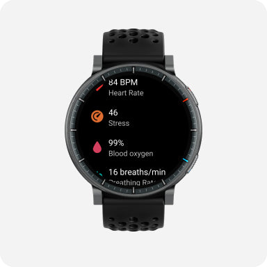 Mide simultáneamente tu frecuencia cardíaca, nivel de estrés, oxígeno en sangre y frecuencia respiratoria para obtener una visión general rápida de las cuatro métricas en solo 45 segundos. -