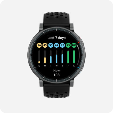 Controla⁹ en tiempo real tu frecuencia cardíaca, calidad del sueño, oxígeno en sangre y estrés, 24/7. -