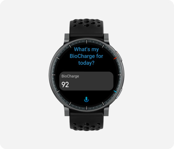 Zepp Flow™ te permite controlar completamente tu reloj usando solo tu voz. Ajusta fácilmente la configuración, consulta tu progreso en Zepp Coach™ y mucho más¹¹. -